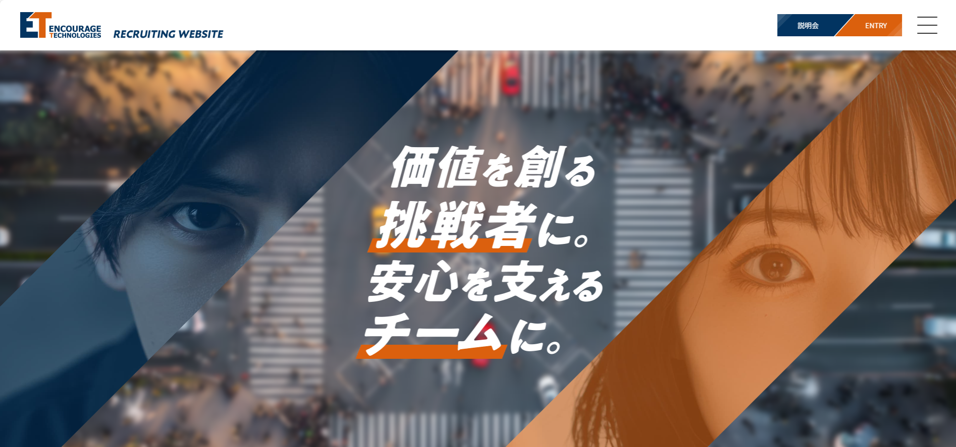 エンカレッジ・テクノロジの魅力や代表取締役からのメッセージなど、当社の社会的意義であったり想いを知ることができるページのほか、職種別の仕事内容、キャリアパス、社員紹介等、キャリアをイメージしやすいコンテンツなどが充実しております。